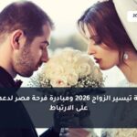 مبادرة فرحة مصر عبر منصة تيسير الزواج 2026، أطلقت وزارة التضامن الاجتماعي مبادرة فرحة مصر لدعم زواج الشباب والفتيات من خلال منصة تيسير الزواج 2026، حيث تهدف هذه المبادرة إلى توفير المتطلبات الأساسية لتجهيز منزل الزوجية وتخفيف الأعباء المالية عن كاهل الأسر الأولى بالرعاية، وتعد المنصة حلقة وصل هامة لتقديم الدعم العيني المباشر الذي يضمن حياة كريمة للمقبلين على الزواج وتوفير الأجهزة الكهربائية والمفروشات الأساسية لكل بيت جديد.